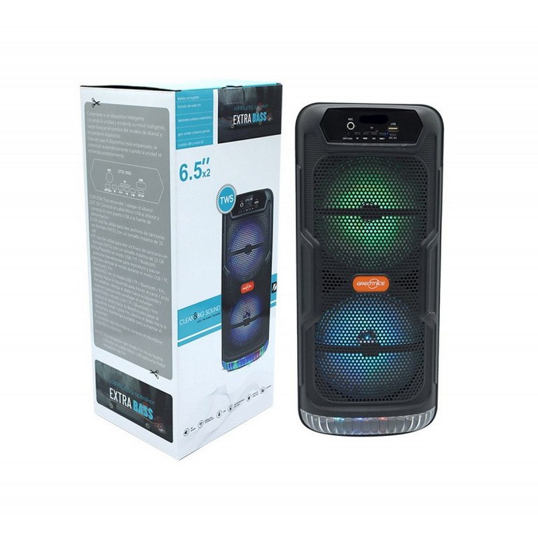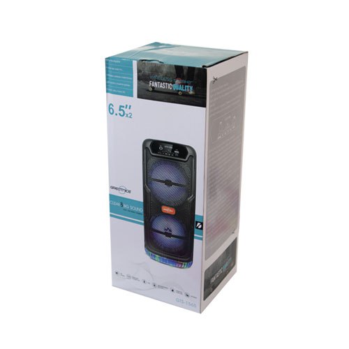 اسپیکر GTS-1565 برای تولید صدای شفاف و قدرتمند در فضاهای بزرگ طراحی شده و هر نوع صدای موردنیاز یک محیط را با کیفیت بالا پخش میکند. توان خروجی بالا آن را برای مهمانیها و مراسم مناسب کرده و طراحی جذاب، افکتهای نوری و قابلیت حمل، ارزش آن را بیشتر میکند.این مدل از باتری ۳۰۰۰ میلیآمپرساعتی استفاده میکند که حدود ۴ ساعت پخش موسیقی ارائه میدهد و شارژ کامل آن ۳ تا ۴ ساعت زمان میبرد.اتصال به اسپیکر هم بهصورت بیسیم از طریق بلوتوث و هم باسیم از طریق USB و کارت حافظه Micro SD امکانپذیر است، بنابراین بهراحتی میتوان انواع موسیقی را با هر روش اتصال پخش کرد.