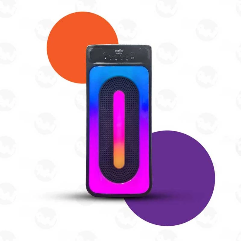 اسپیکر بلوتوثی قابل حمل GTS-1770 دارای طراحی زیبا و کیفیت ساخت بالا می باشد. این اسپیکر دارای وزن کم و با قابلیت حمل و نقل بسیار آسان طراحی شده است. این مدل از اسپیکر قابل حمل به سیستم بلوتوث ، قابلیت اتصال فلش USB و ورودی کارت حافظه است.اسپیکر بلوتوثی رقص نور دار خوش ساخت با بدنه مقاوم در برابر ضربه و فشار می باشد. که در ابعادی متناسب با بهره مندی از طراحی زیبا و نورپردازی خیلی زیبا تولید شده و با ویژگی های کاربردی خود مناسب استفاده در جمع های دوستانه و جشن های شما می باشد.این اسپیکر با توجه به وزن مناسب ، شما را قادر می سازد که به راحتی از آن در تفریحات ، مراسمات و مهمانی ها استفاده کرده و لذت ببرید