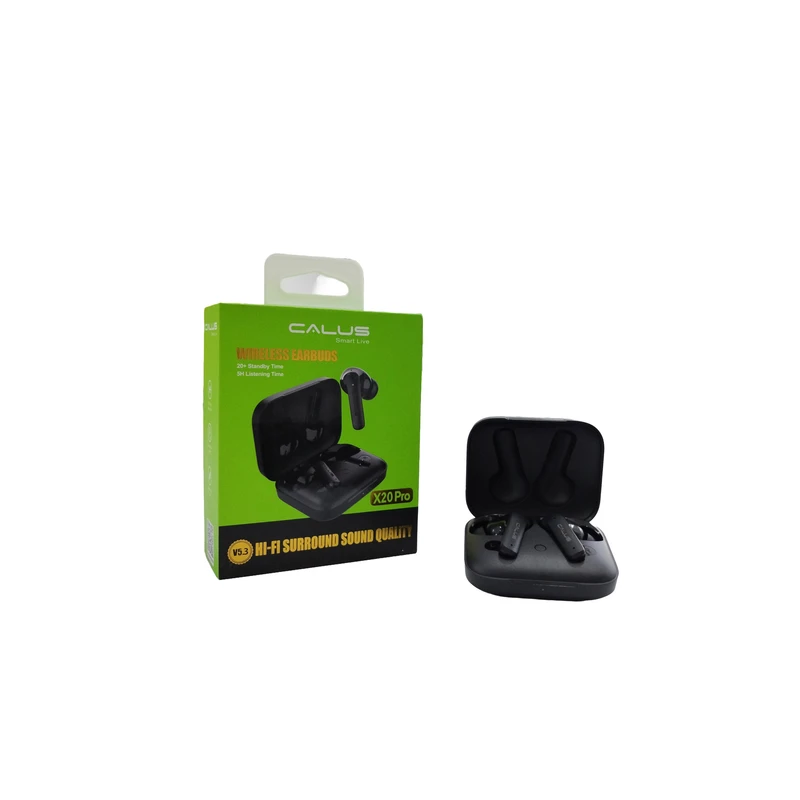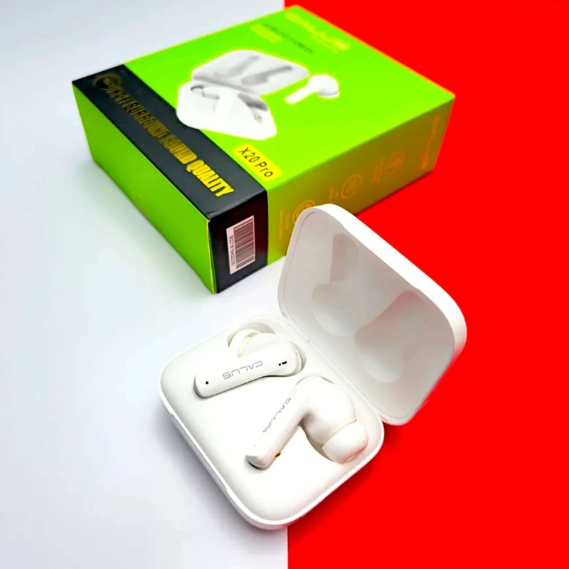 برند این ایرپاد کالوس (Calus) اصل میباشد و مدل آن X20 Pro میباشد وزن آن نزدیک به 40 گرم و رنگ آن سفید و مشکی سایز درایور هدست آن 10 میلی متر است. سایر مشخصات هدست بدين ترتيب است که دارای گواهینامه ضد آب IPX4 و دارای محفظه شارژ و دارای میکروفون و قابلیت حذف صدای مزاحم (ANC)نوع اتصال آن بی سیم مناسب برای کاربری عمومی و مکالمه و ورزش مناسب هست رابط آن بلوتوث و اقلام همراه آن یک جفت سری سیلیکونی هست.