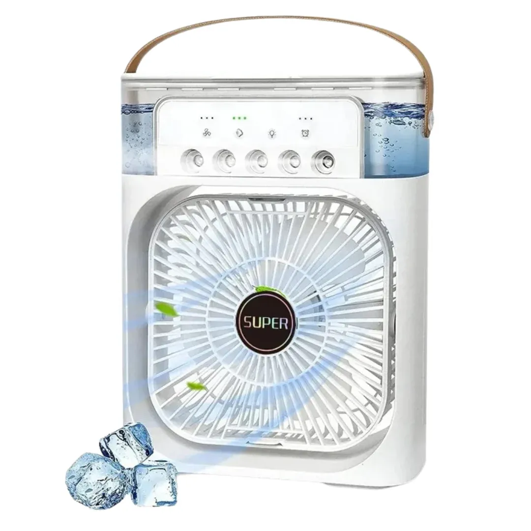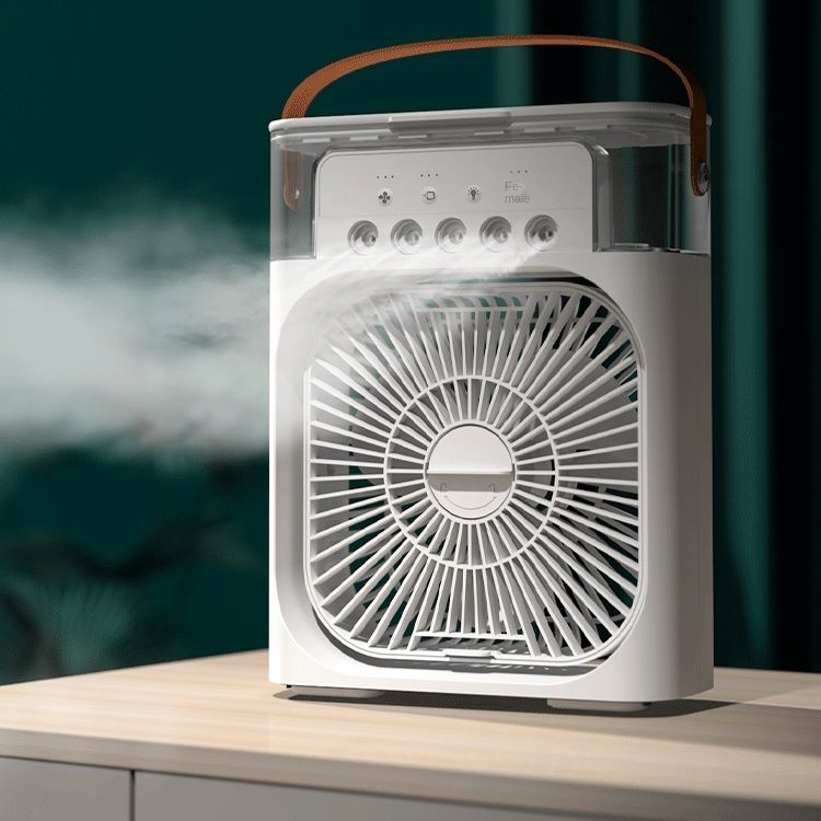 پنکه مه پاش رومیزی مدل Air Cooler Fan فاقد باتری است و به صورت مستقیم توسط آداپتور و کابل USB Type C به برق متصل میشود. دارای پنج نازل مه پاش قوی و قابلیت تنظیم تعداد مه پاش ها است. دارای پد خوشبو کننده و تایمر جهت خاموشی خودکار می باشد. فن دستگاه قابلیت تنظیم دستی و چرخش ۳۶۰ درجه در یک جهت را دارد و محافظ فن دارای قابلیت باز و بسته شدن جهت نظافت پره ها میباشد. ترجیحا از آب تصفیه شده درون دستگاه استفاده شود جهت جلوگیری از رسوب.