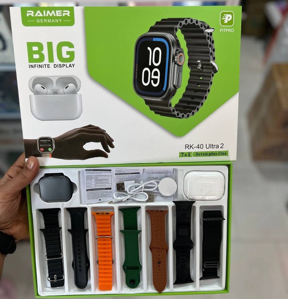 ساعت هوشمند رایمر مدل RK-40 اولترا ۲ /RK-40 Ultra 2 Smart Watch به همراه 7 بند جذاب و ایرپاد